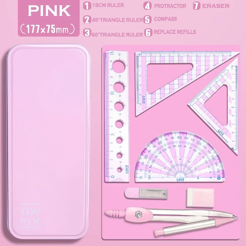 Whether you're a student, teacher, or math enthusiast, our Math Geometry Set Stationery in multiple colors offers the perfect blend of functionality and aesthetic appeal. Grab your set today and unleash your mathematical creativity in style!