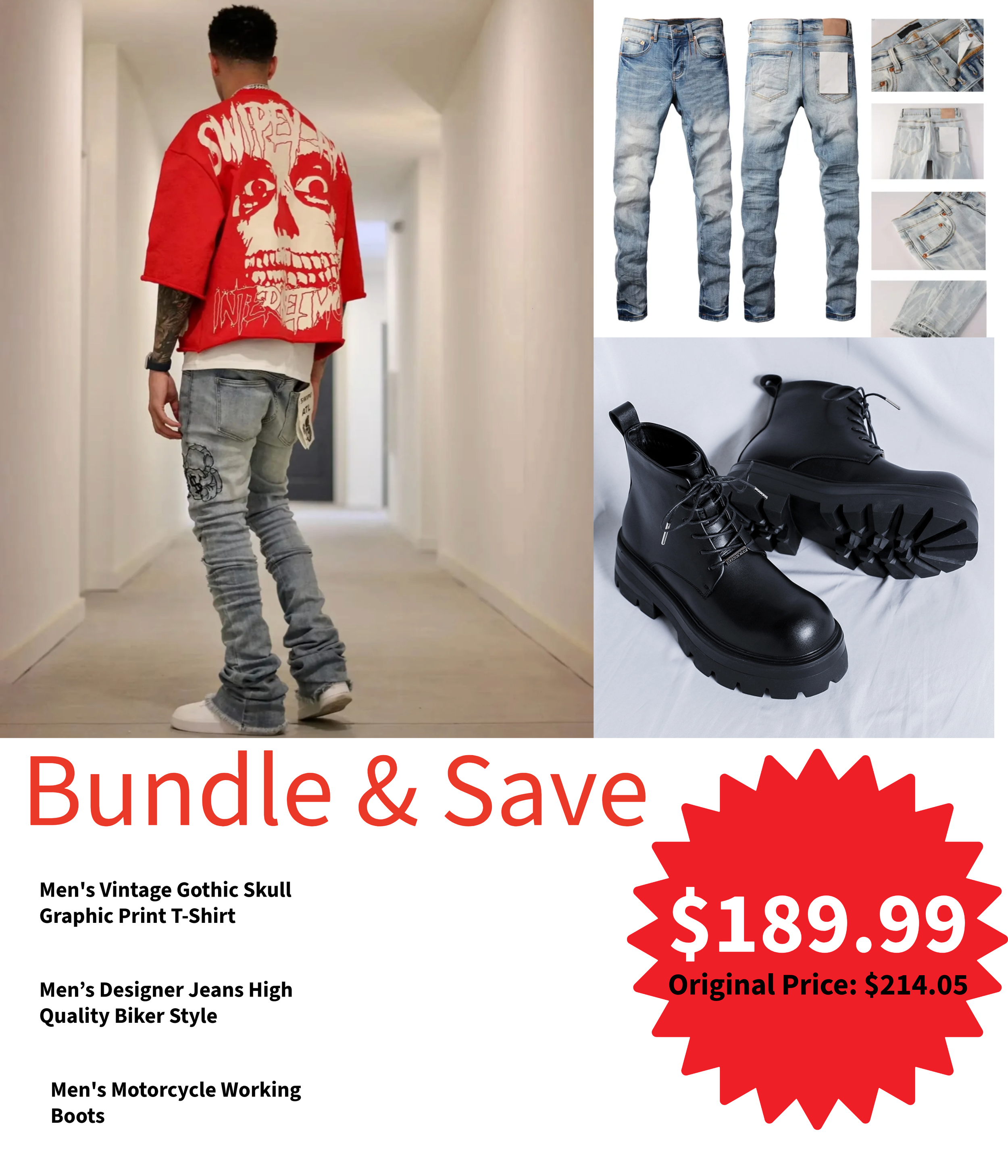 Men's Vintage Gothic Skull Graphic Print T-Shirt