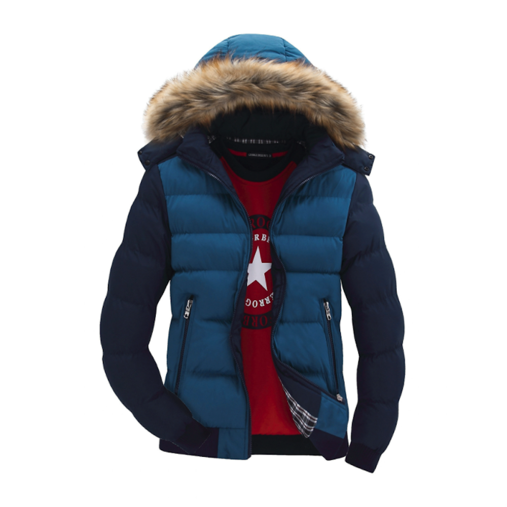 Men's Two Tone Puffer Winter Jacket with Removable Hood