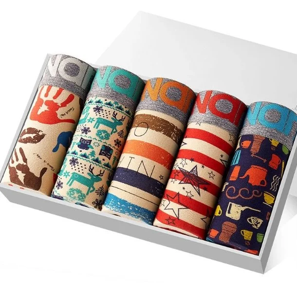 Men's Cotton Antibacterial Boxers Breathable Underwear Set 5pcs