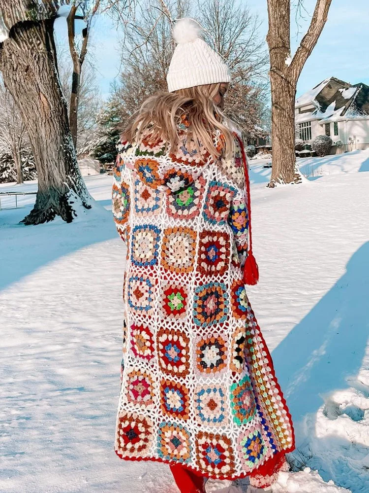Embrace the season with the intricate details of appliques, a subtle and tasteful addition to this ensemble. The set boasts a timeless design with a solid pattern, creating an elegant and classic look. Pockets add both functionality and flair to this winter essential.