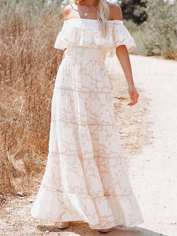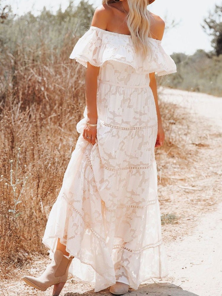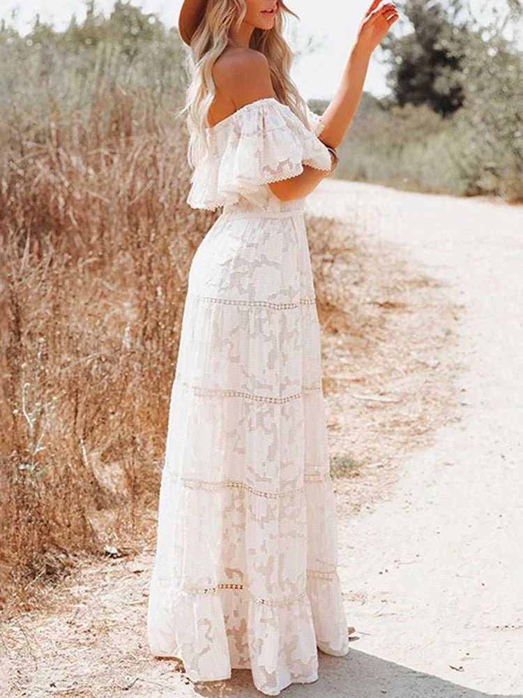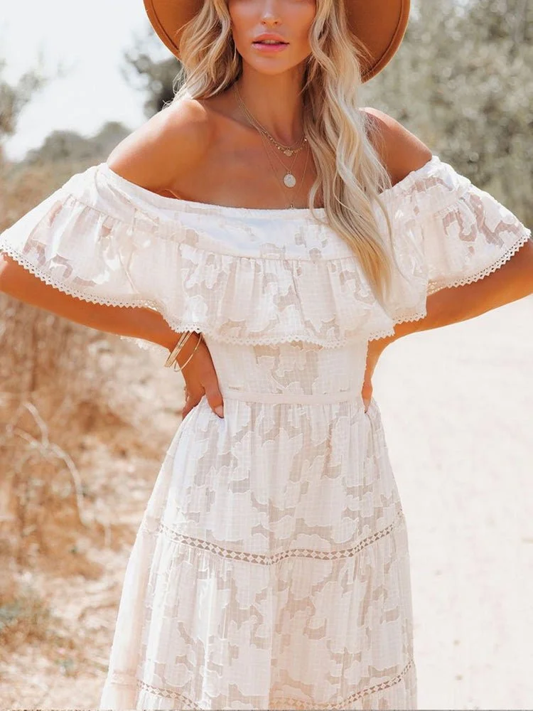 Off Shoulder Embroidery Lace Boho Dress